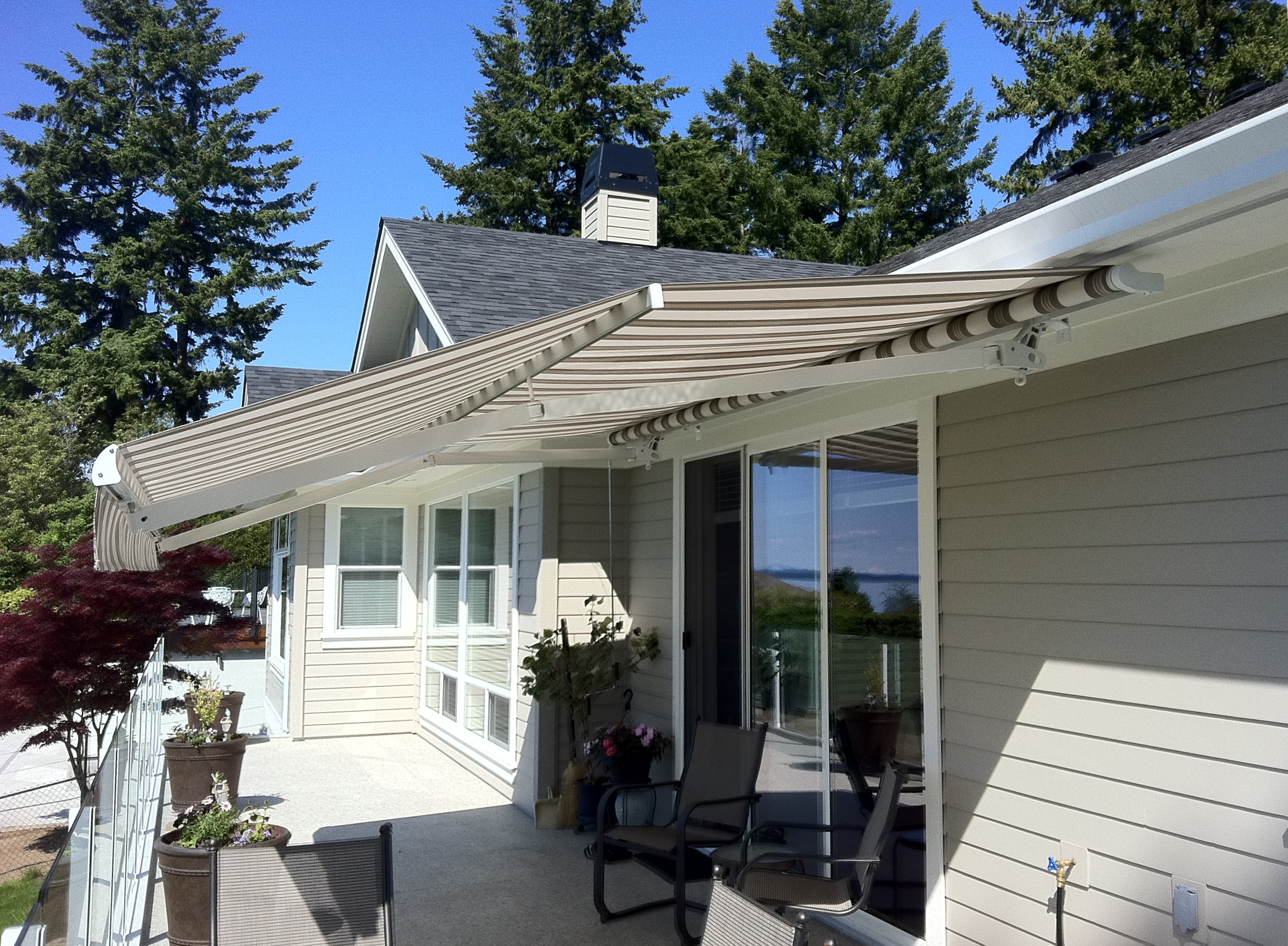 The awning features smooth motorized operation with a remote control, allowing you to extend or retract coverage effortlessly. A built-in wind sensor adds an extra layer of protection by automatically retracting the awning in adverse conditions, helping to preserve its longevity.